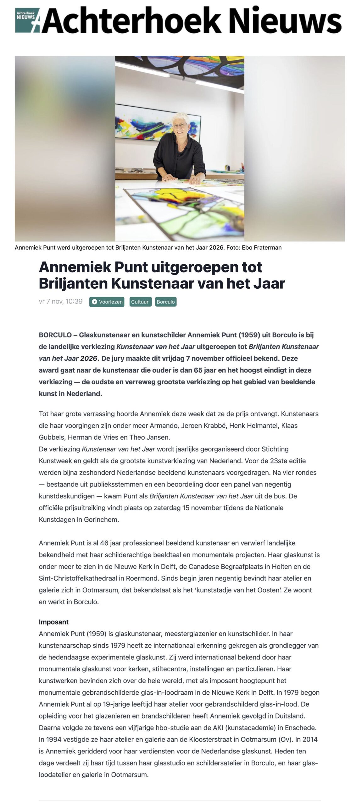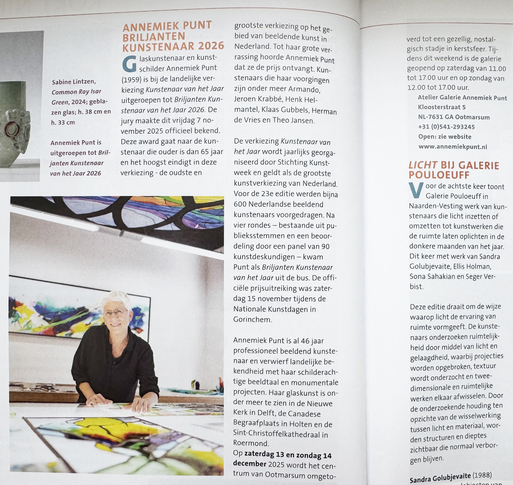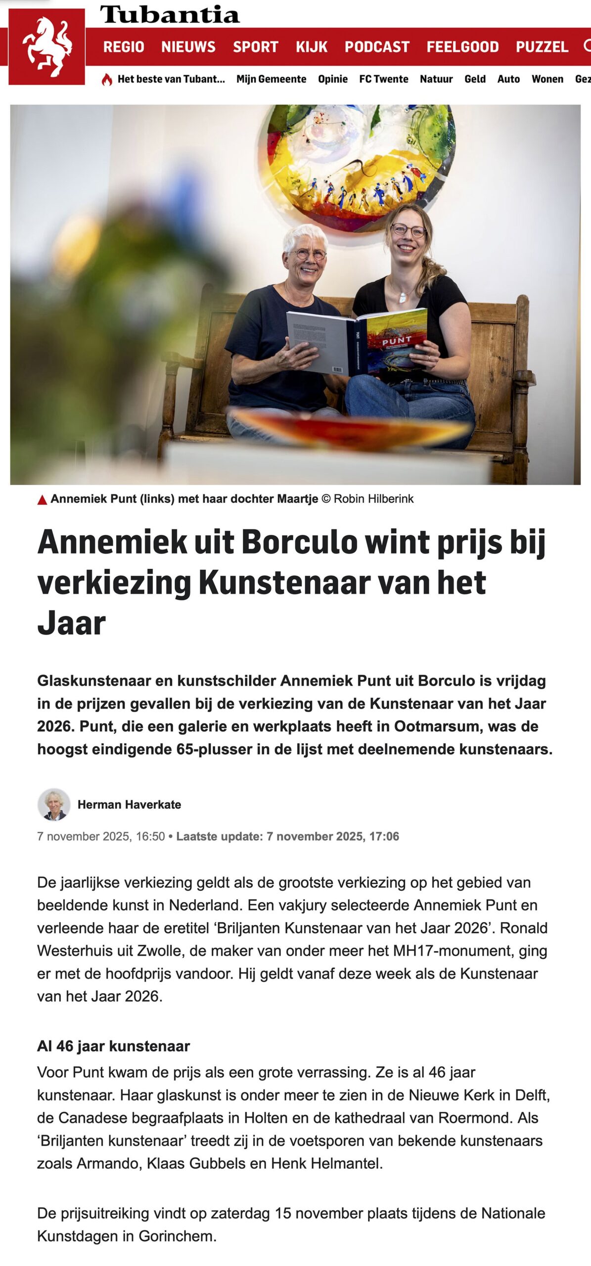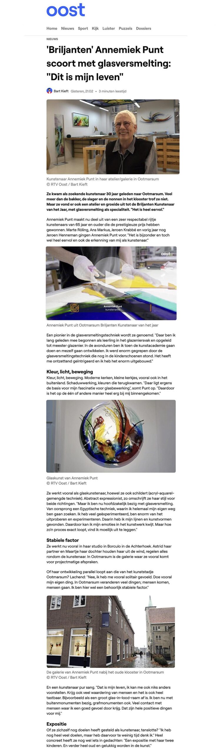 Hier vindt u een selectie publicaties rondom het kunstenaarschap van Annemiek Punt in de pers: